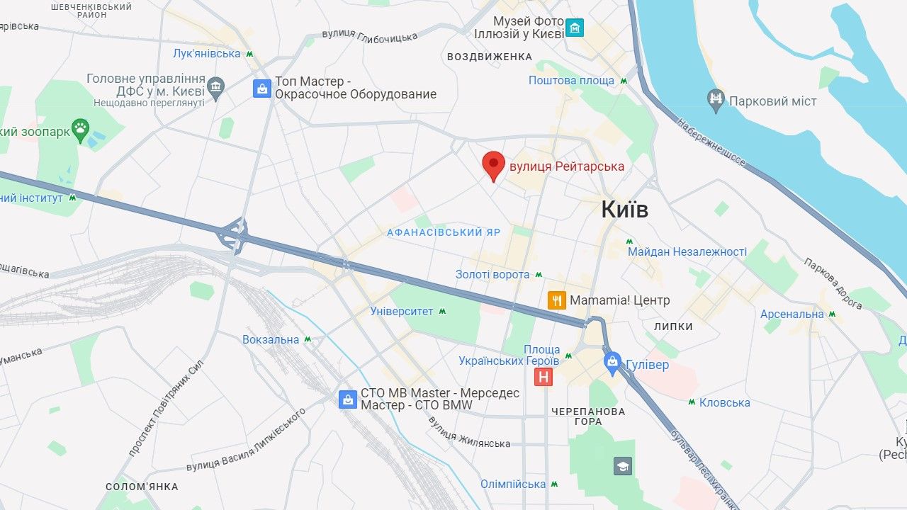 Улица Рейтарская в Киеве на карте