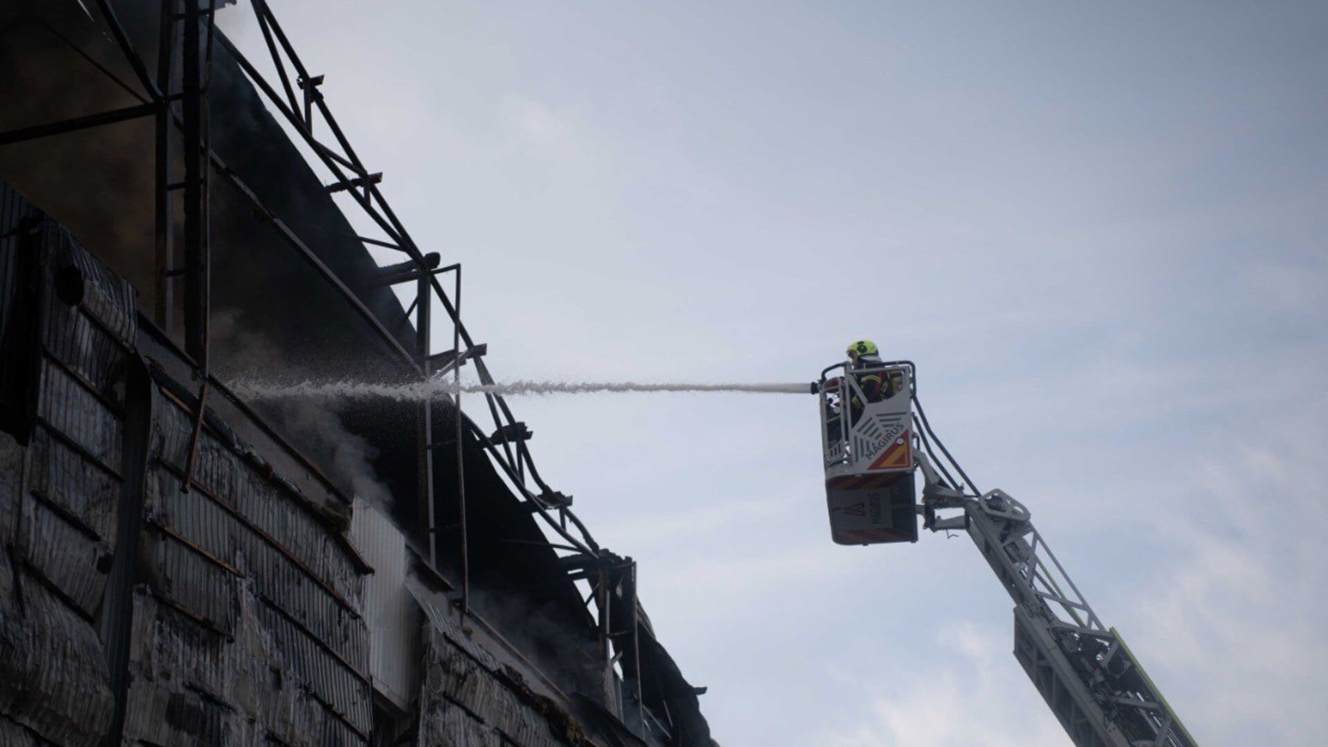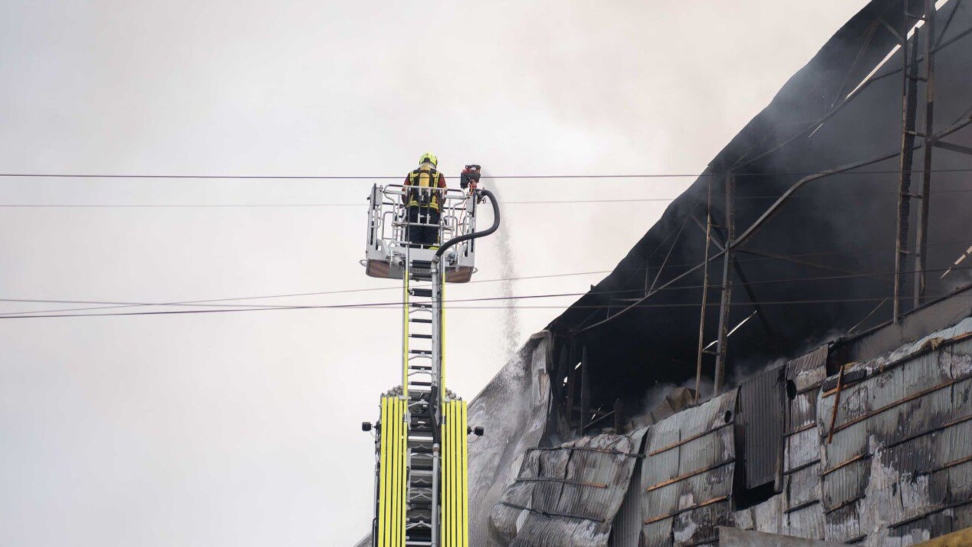В Голосеевском районе из-за падения обломков огнем охватило 2 тыс. кв. м в четырехэтажном офисно-складском здании.