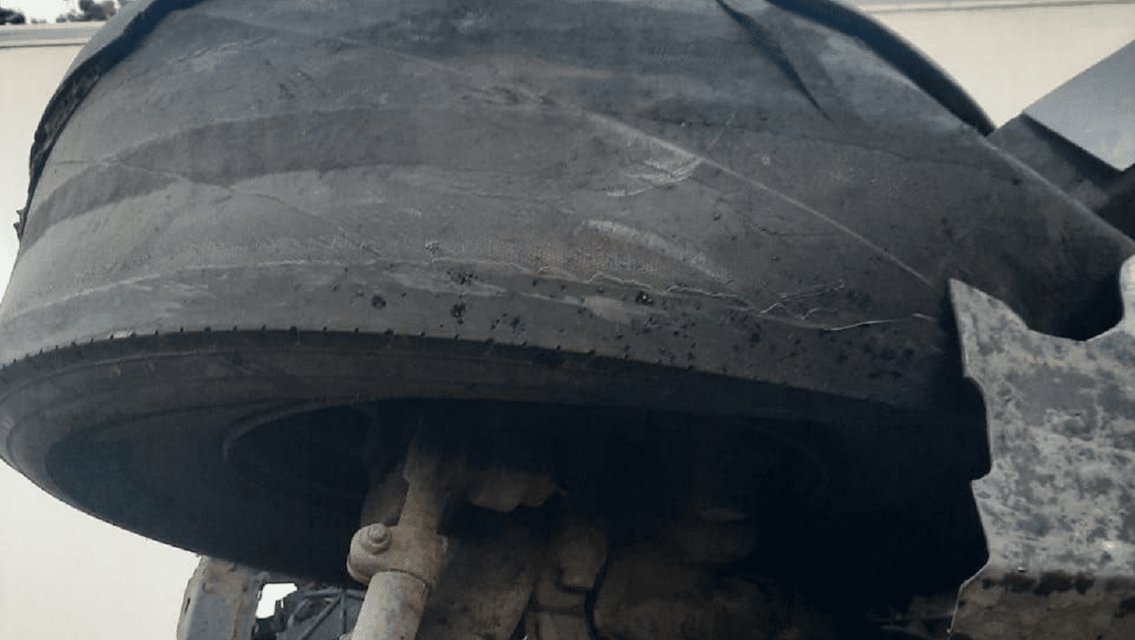 Как сообщает патрульная полиция Черкасской области, на автодороге М-05 Киев — Одесса водитель, управляя тягачом Volvo с полуприцепом, перед началом движения не обеспечил технически исправное состояние автомобиля, в результате чего переднее левое колесо грузовика разорвалось во время движения .