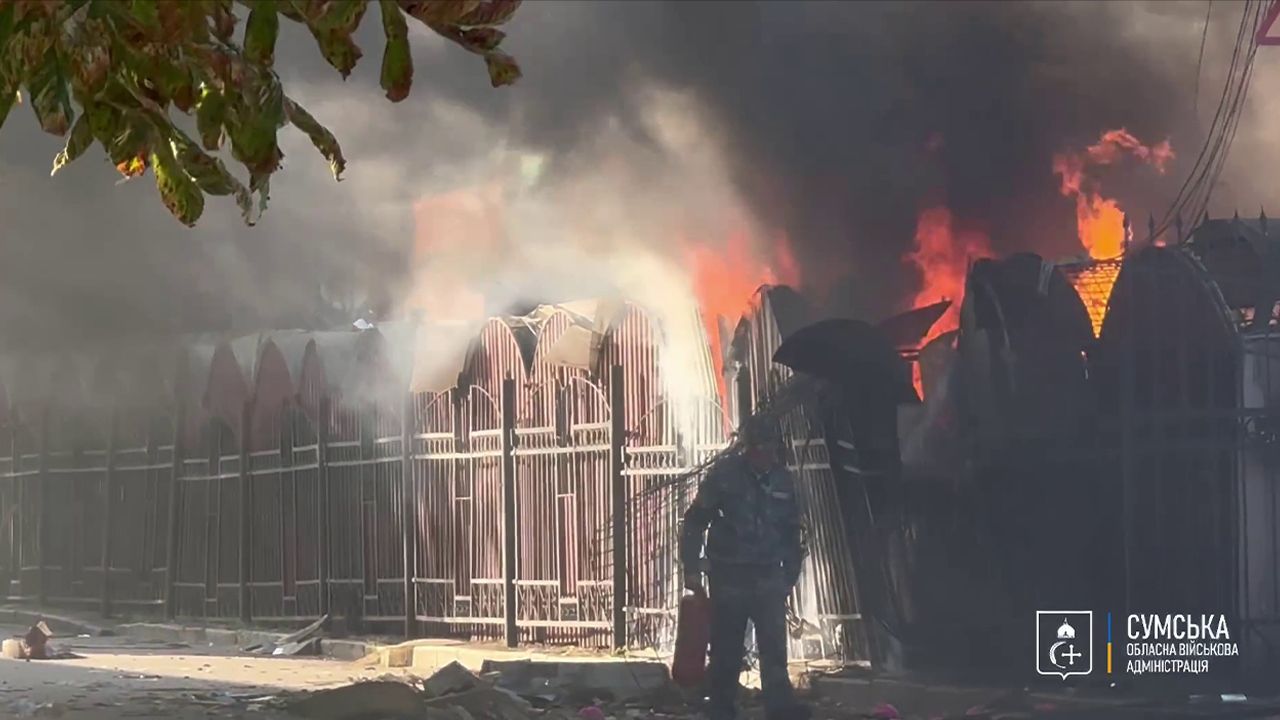 Российские войска нанесли удар по центральной части Сум, попав по торговым рядам Центрального рынка.