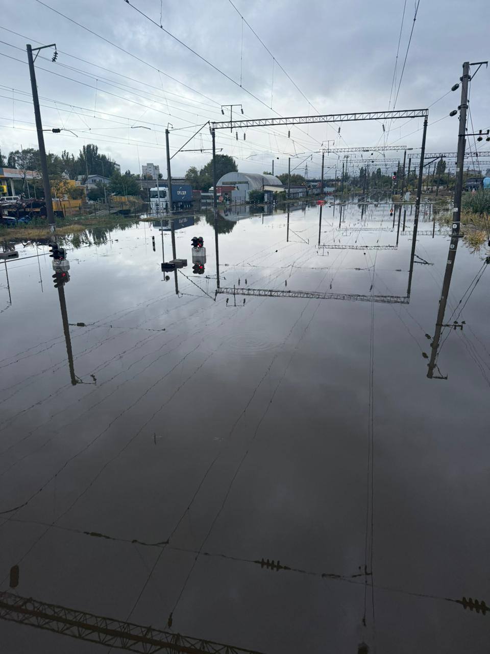 Александр Перцовский, председатель правления Укрзализныця, сообщил, что на станции Одесса Пересып водой полностью затопило пути.