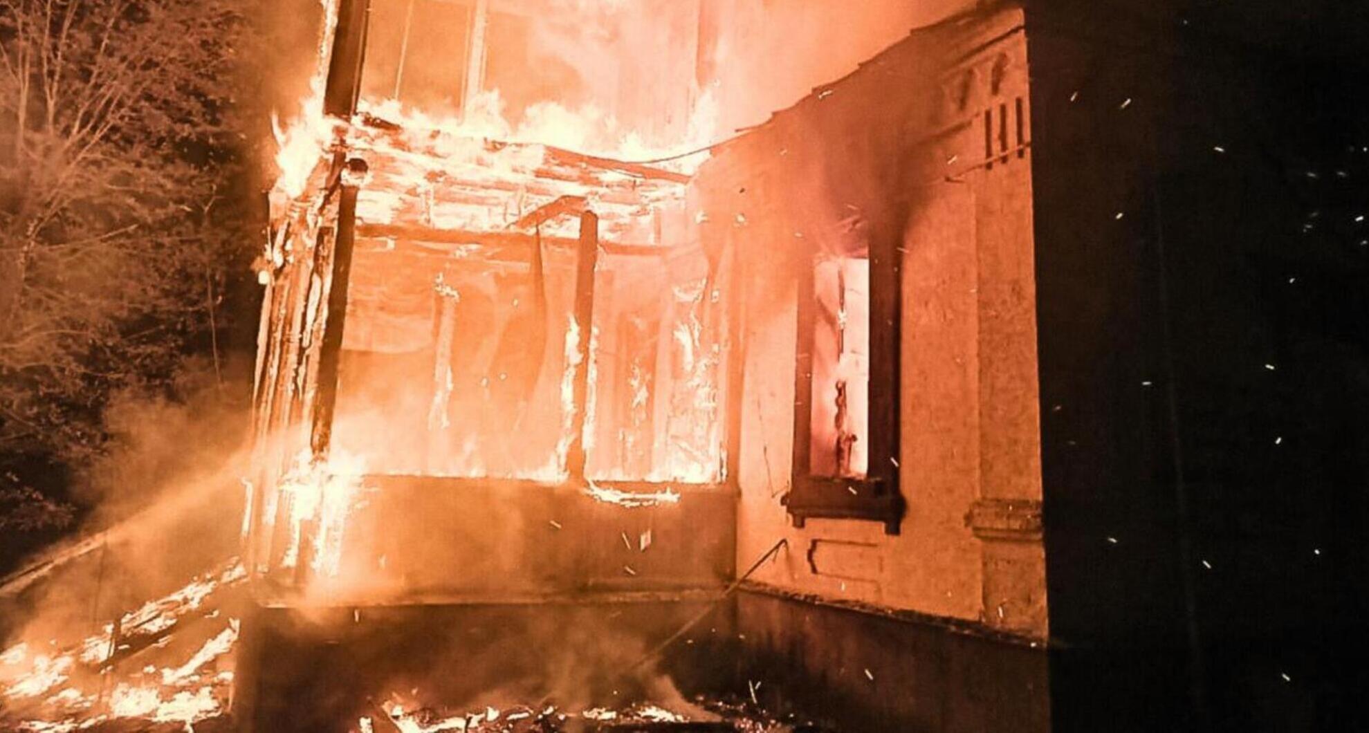 В результате атаки на Бучу сегодня возник масштабный пожар в двухэтажном здании санатория, который не функционирует.