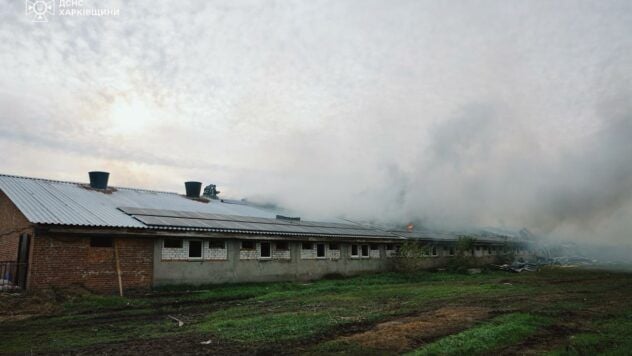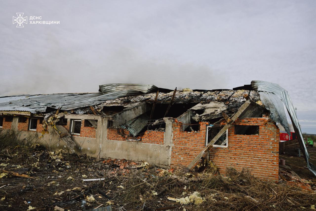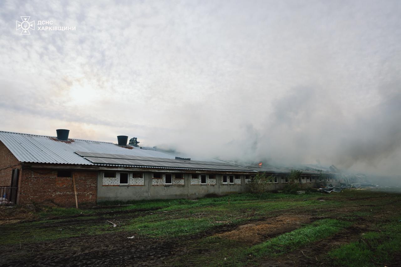 Отмечается, что атака на сельхозпредприятие в Нововодолажской общине привела к масштабному пожару – горели восемь зданий для содержания свиней на общей площади в 13,6 тыс. кв. м.