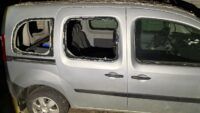 На месте атаки возник пожар. Поврежден также легковой автомобиль.