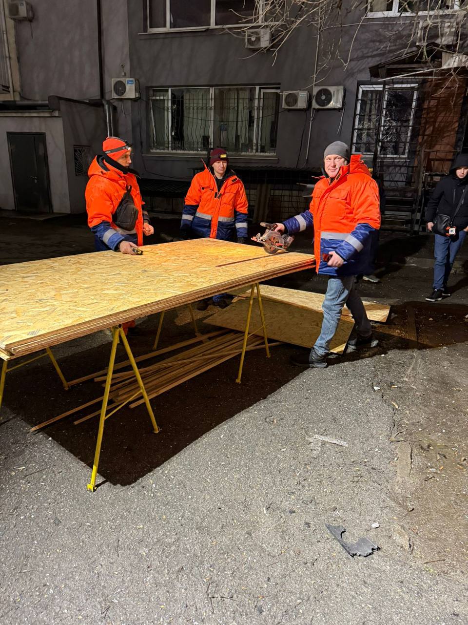 Коммунальные службы ликвидируют последствия взрывов в Одессе 12 февраля.