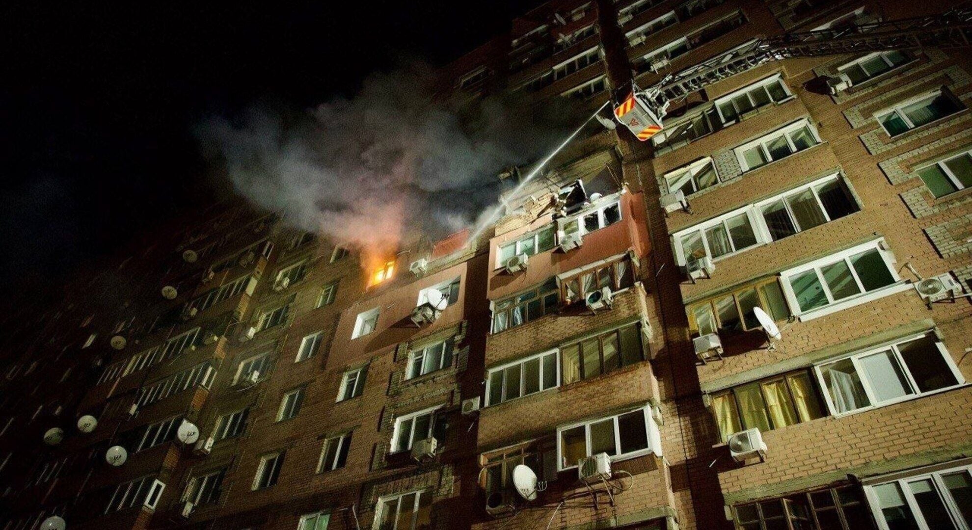 В результате атаки на Днепр в разных районах города возникли пожары. Повреждена жилая застройка, в частности многоэтажные дома.