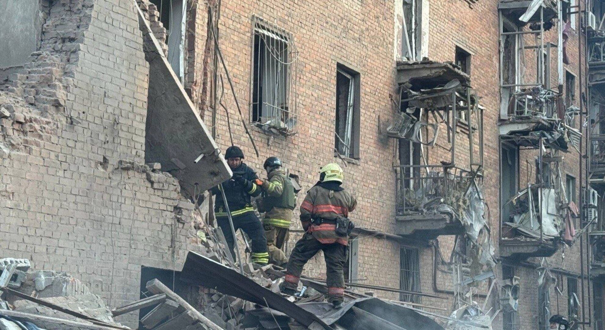В результате атаки на Днепр повреждены многоэтажные дома. Произошли пожары. Одна из 4-этажек разрушена.