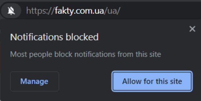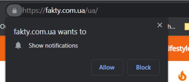 2. Після цього повинна з’явитися форма із пропозицією підписатися на Push-повідомлення, прийміть її — кнопка Allow.