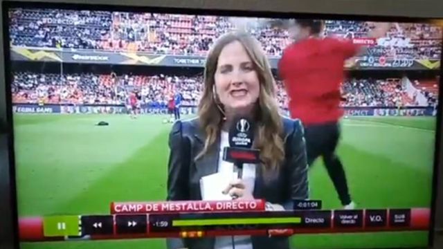 Журналистке попали мячом в голову перед матчем Лиги Европы