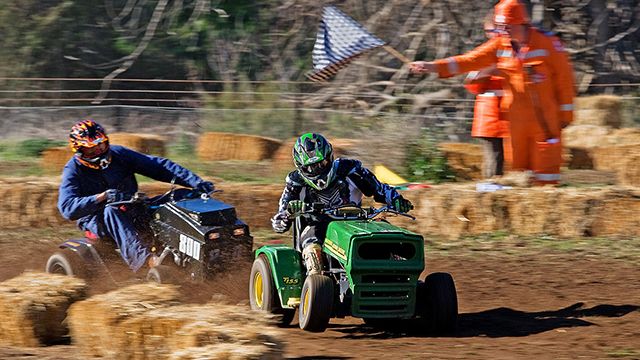 Это разновидность моторного вида спорта, в котором участники гоняют на тракторах-газонокосилках. Со стороны это выглядит довольно забавно, но соревнования, тем не менее, очень популярны. Этот вид спорта является достаточно травмоопасным, однако официально зарегистрирован как вид спорта в США, Великобритании и Австралии.