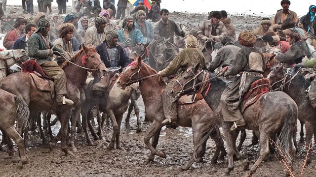 Эта игра распространена в Таджикистане, Афганистане, Туркменистане, и напоминает поло на лошадях. Однако вместо мяча здесь используют обезглавленный труп животного.