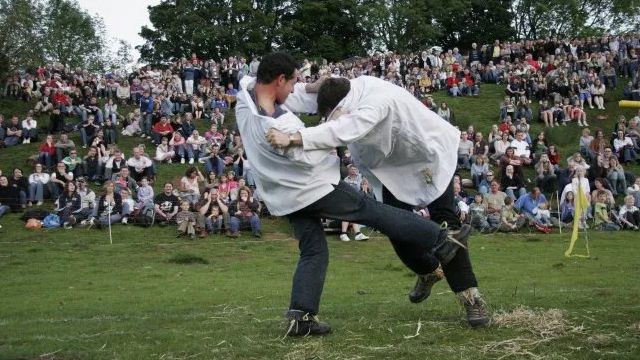 Этот вид спорта невероятно популярный в британском Куперс Хилл. Задача каждого спортсмена — повалить соперника на землю, ударяя его по голени. Участники надевают белые халаты, хватают друг друга за шиворот и бьют по голени, пока один из игроков не упадет.