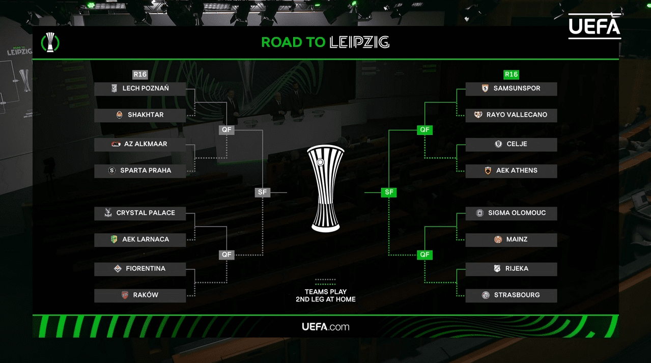 Жеребьевка 1/8 финала Лиги конференций сезона-2025/26 состоялась в штаб-квартире УЕФА в пятницу, 27 февраля.