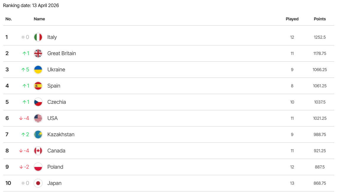 В 2025 году Украина после выхода в полуфинал финальной части турнира вошла в топ-5 рейтинга.