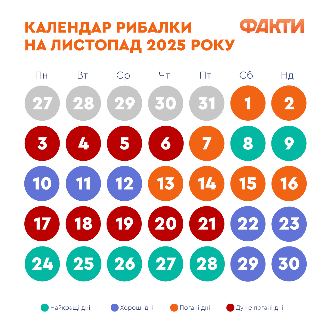 Факты ICTV подготовили календарь рыбалки на ноябрь 2025 года, который поможет определить самые благоприятные дни для клева.