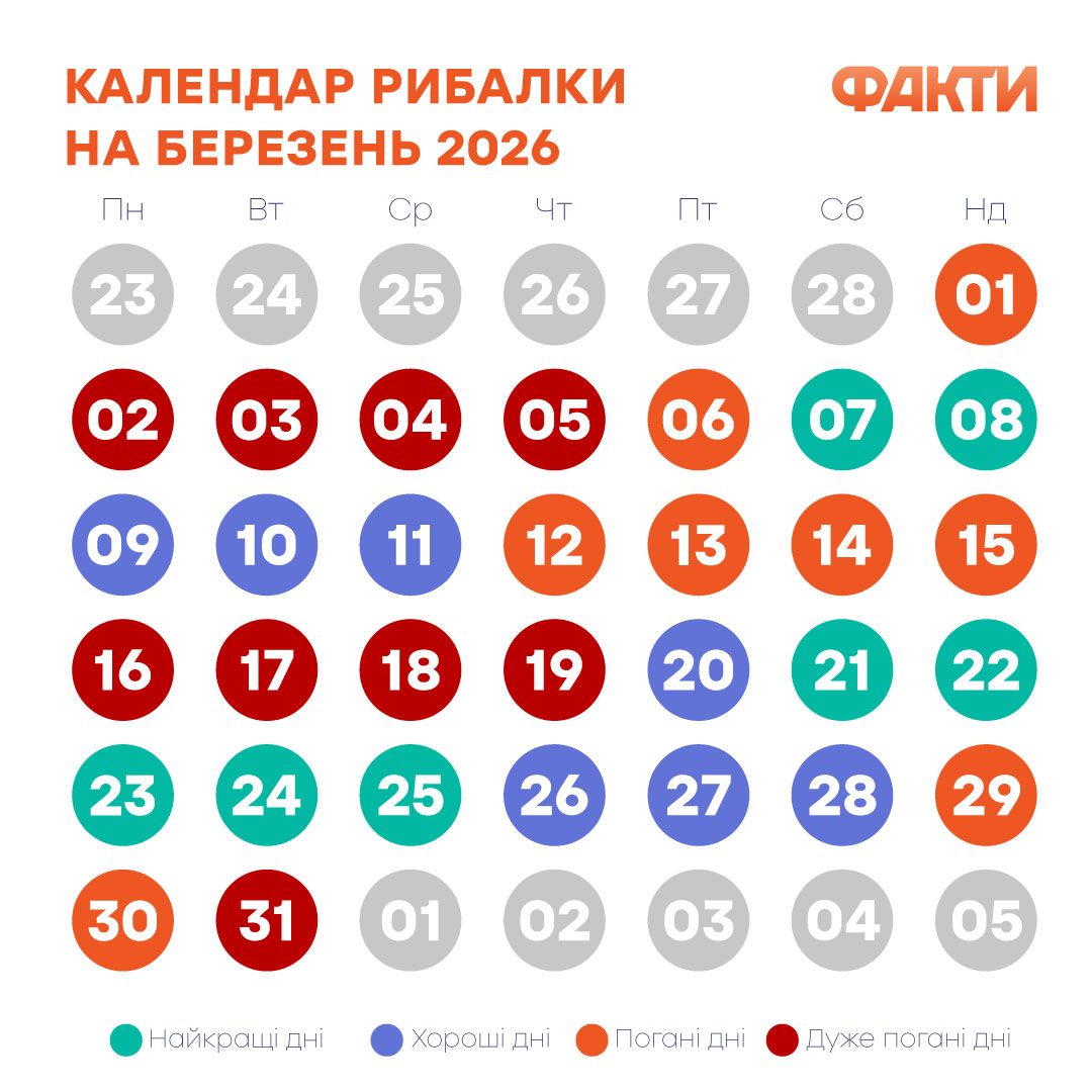 Факты ICTV подготовили календарь рыбалки на март 2026 года, чтобы вы выбрали лучшие дни для удачного улова.