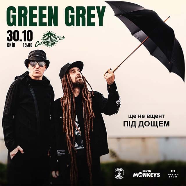 30 октября в Caribbean Club — концерт легенд украинского рока Green Grey в рамках тура Под дождем. Группа, которая более 30 лет формирует звучание украинской сцены, возвращается в Киев — с живым выступлением, проверенными хитами и новыми треками.