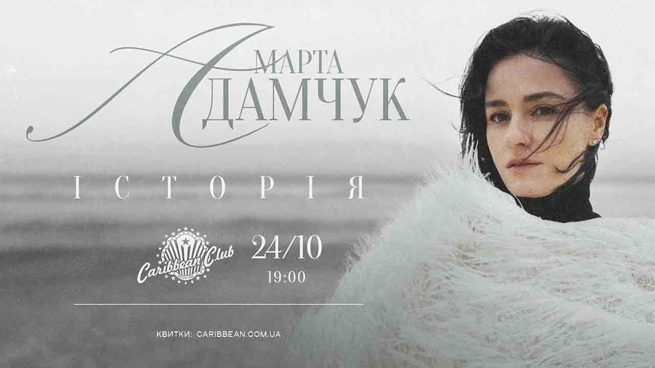 24 октября Марта Адамчук выступит со вторым сольным концертом в Caribbean Club. На сцене прозвучат известные композиции певицы, такие как Колія, Палає и Рожевий туман, а также новые песни и неожиданные интерпретации украинской классики.