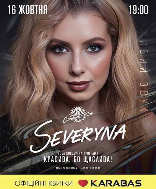 16 октября певица SEVERYNA выступит в Caribbean Club с новой программой Красивая, потому что счастливая!