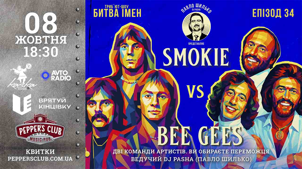 8 октября состоится очередная “битва имен” от шоумена Павла Шилька, известного как DJ Паша. На этот раз на сцене сойдутся две легенды поп-культуры — Smokie и Bee Gees.