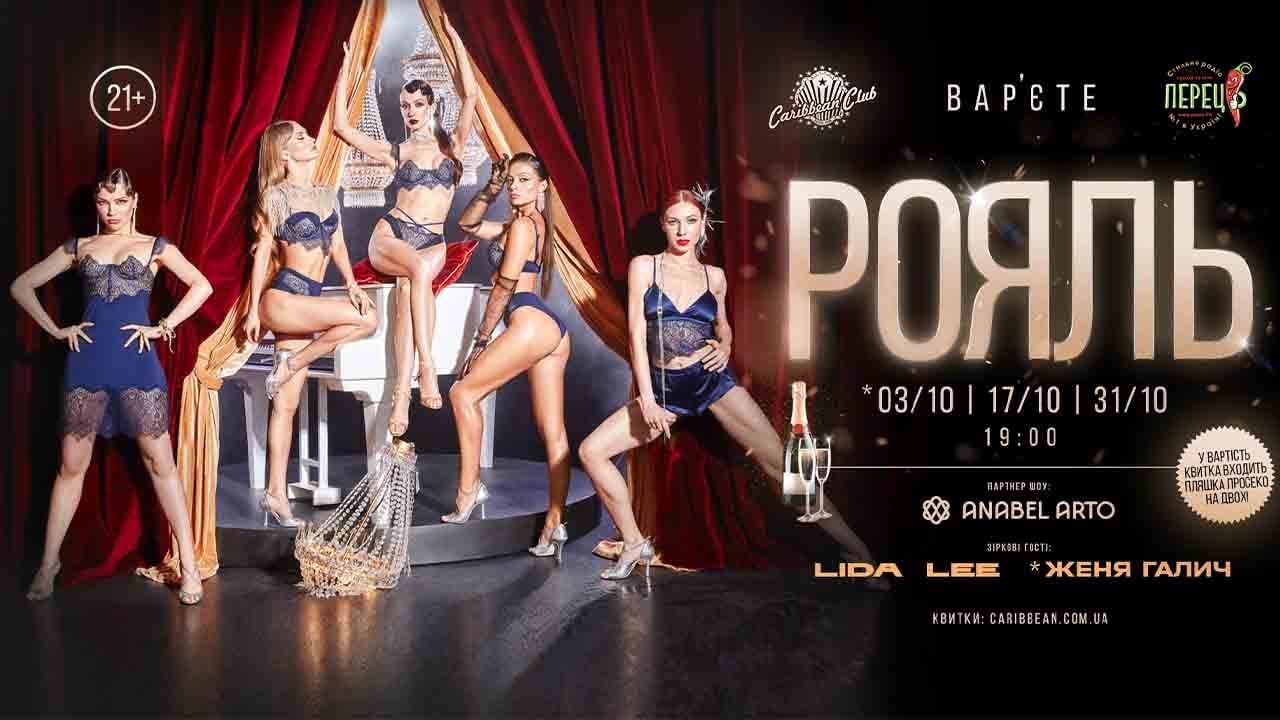 Варьете Рояль уже более пяти лет собирает аншлаги благодаря сочетанию эстетики варьете, живого вокала и чувственных постановок.