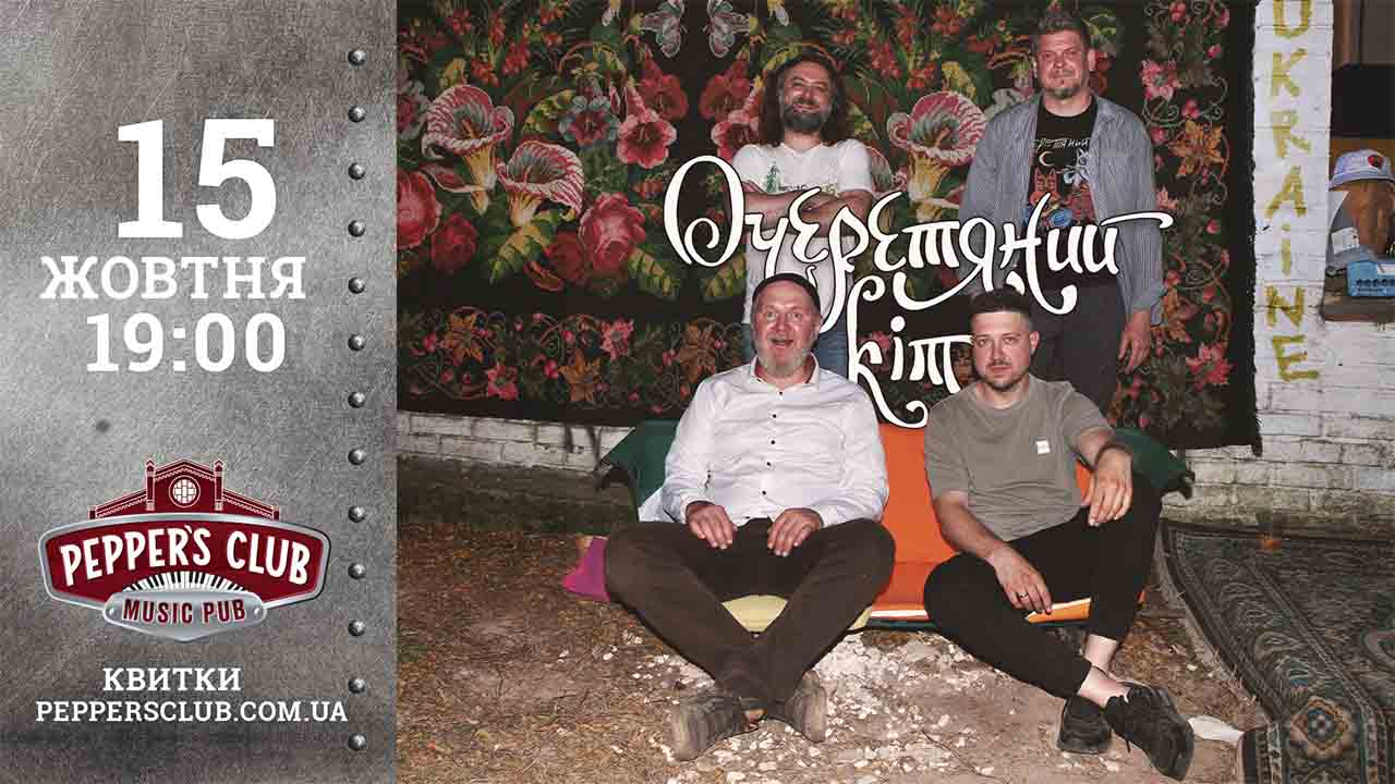 15 октября группа Очеретяний Кіт будет отмечать 30 лет творчества на сцене Pepper’s Club. В программе — песни из разных периодов, в том числе и новые треки, созданные во время полномасштабной войны.
