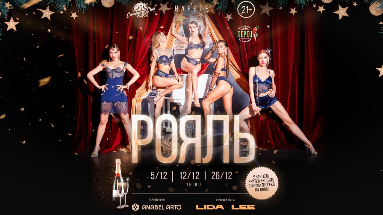 Изысканное шоу Рояль – это сочетание музыки, эротики и эстетики парижского кабаре. В стоимость билета входит напиток – бутылка просекко или вина на двоих.