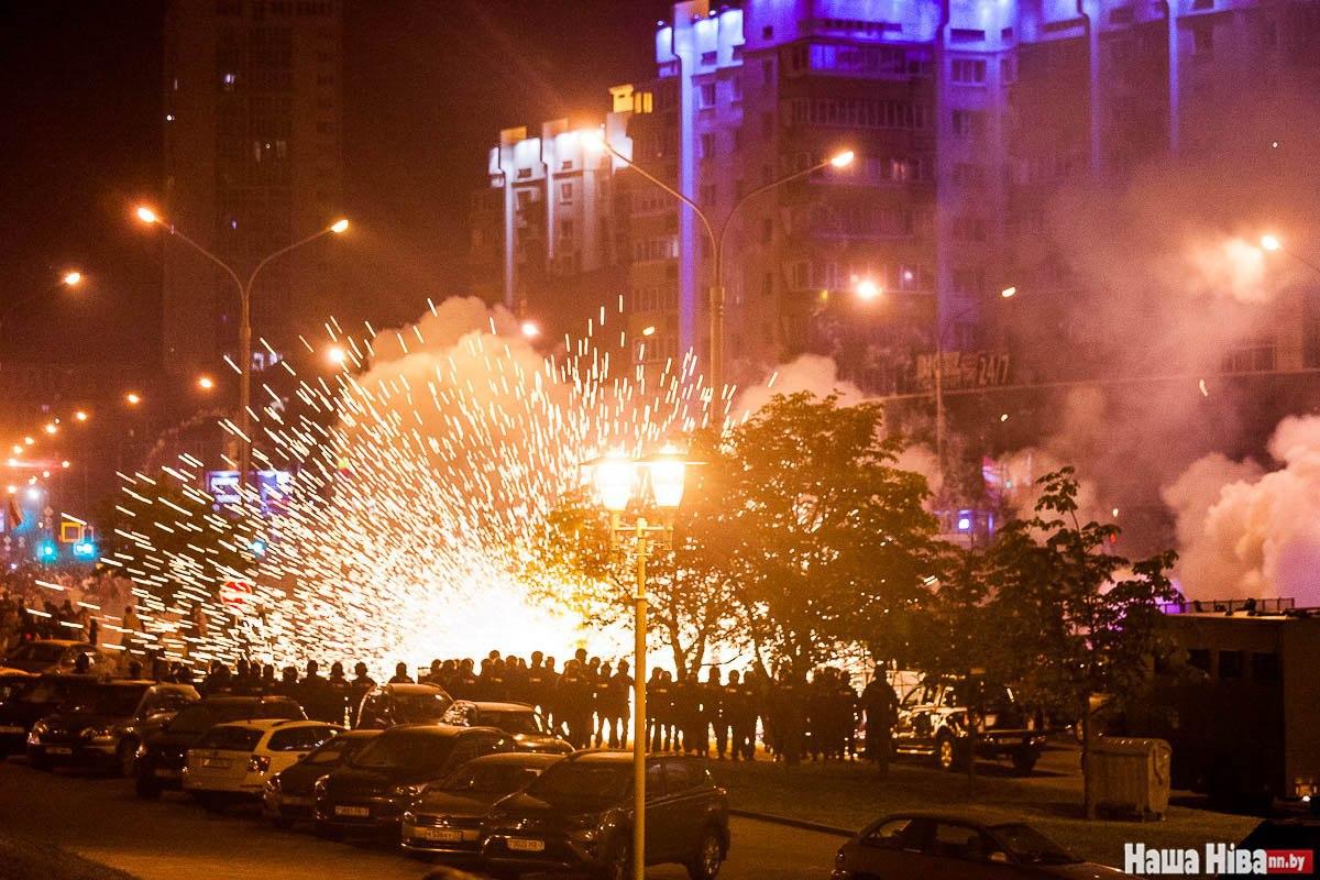 Министерство внутренних дел Беларуси заявило, что взяло ситуацию с протестами под контроль и подтвердило использование свето-шумовых гранат и спецтехники для разгона протестующих.