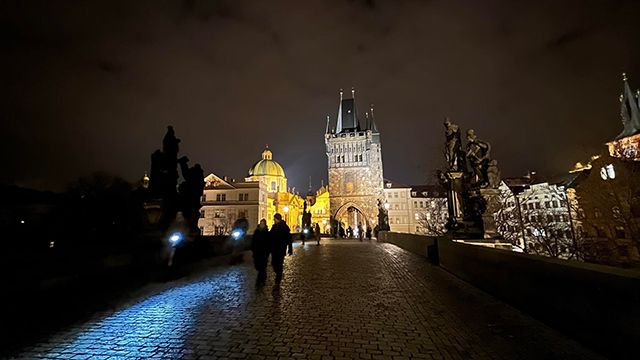 На правом берегу Влтавы, поднявшись на холм вечером, можно увидеть Пражский град в лучах восходящего солнца.