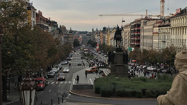 Центральная площадь города, где расположен Национальный музей и памятник святому Вацлаву. Вдоль площади – рестораны, магазины, музеи, жизнь здесь затихает только ночью.
