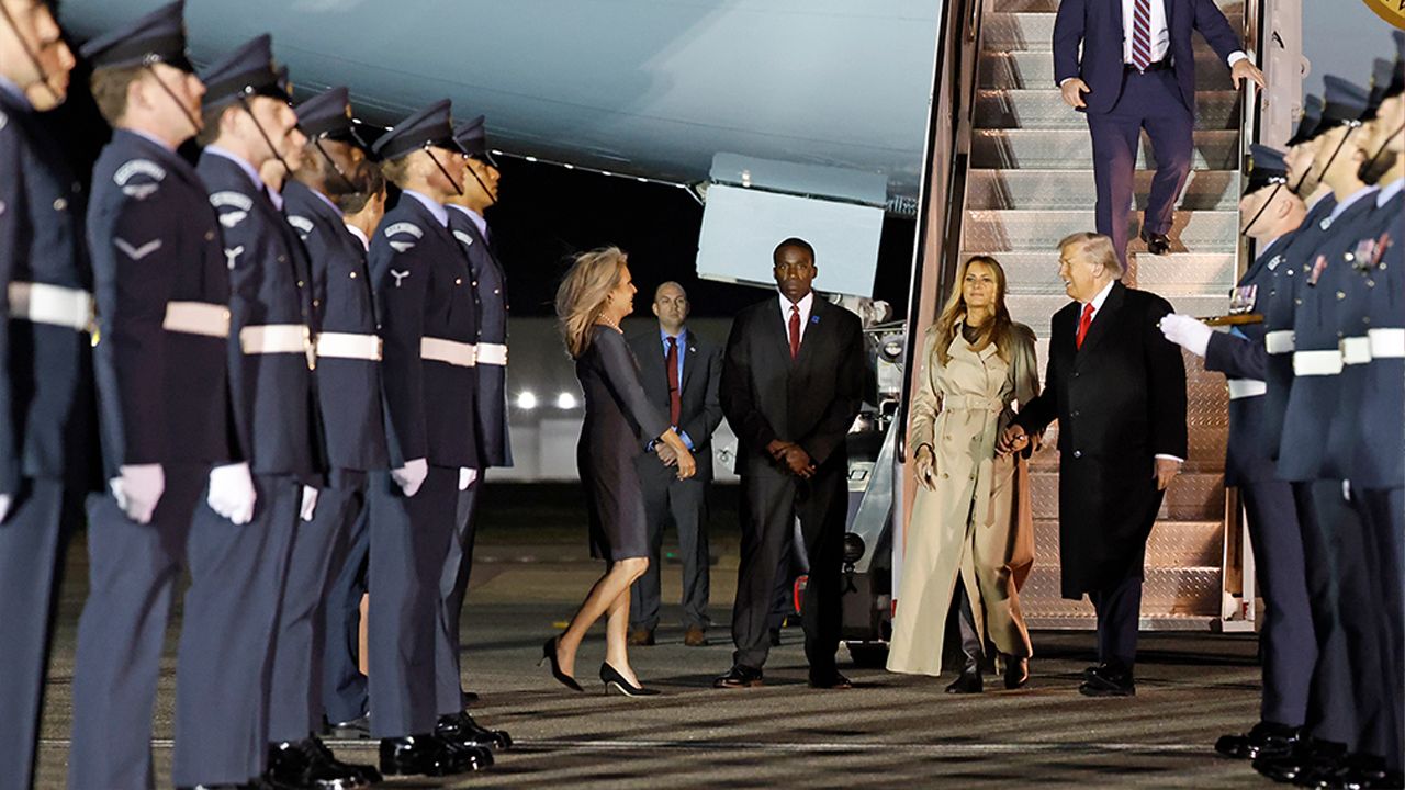 В первый день визита Трампа с первой леди США встретили в Уиндзорском замке король и королева. Перед входом во дворец президента США приветствовали 1300 военнослужащих армии, Королевского флота и ВВС.