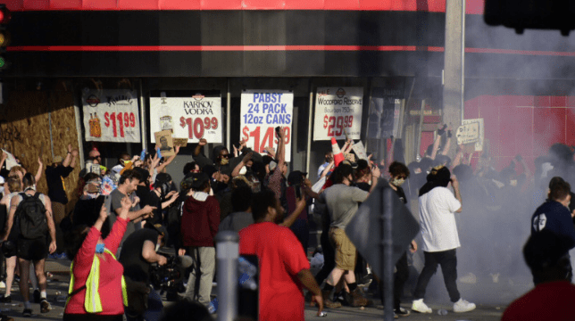 В Миннеаполисе группа людей напала на женщину в инвалидном кресле. Они били ее по лицу и распыляли пену из огнетушителей. Также был момент, когда женщина пыталась схватить корзину с продуктами, но ее обхватили за шею.