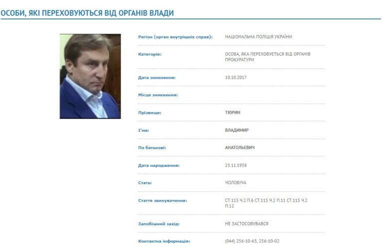 Согласно информации, Владимир Тюрин сейчас скрывается от органов прокуратуры. О нем ничего неизвестно с 10 октября 2017 года.