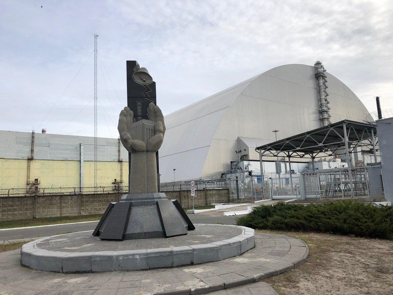Далее по маршруту была Чернобыльская АЭС — объезд вокруг территории, мемориал у административного корпуса, саркофаг, смотровая площадка.