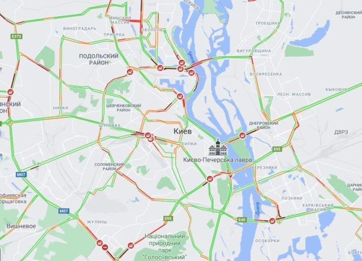 Текущая ситуация на дорогах Киева сегодня сложная. Пробки образовались практически во всех районах столицы.