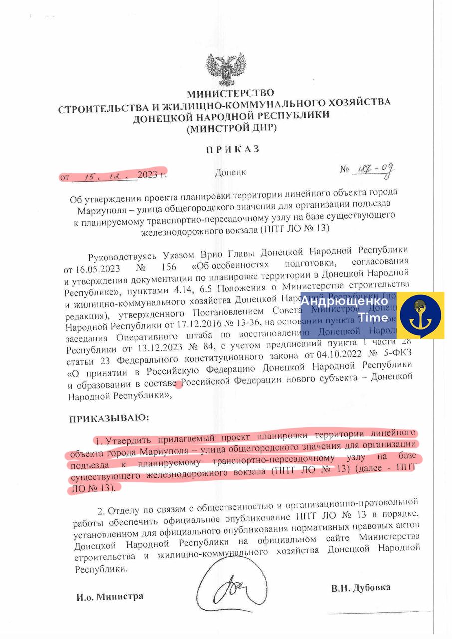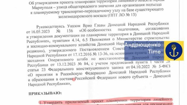 Андрющенко подчеркнул, что подобные намерения оккупанты не только озвучили, но уже подготовили детальные чертежи и план инфраструктуры.