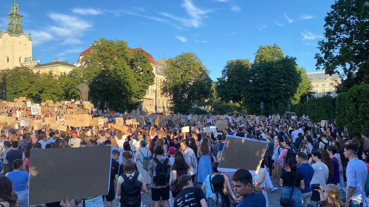 Многие люди вышли на митинги во Львове. Больше всего митингующих — в центре города. Они пришли с самодельными плакатами с надписями “Вето на закон”, “Народ все видит — по-тихому не получится”, “Коррупция — не к месту”, “Единственным источником власти является народ”, “Руки прочь от НАБУ и САП” и т. д.