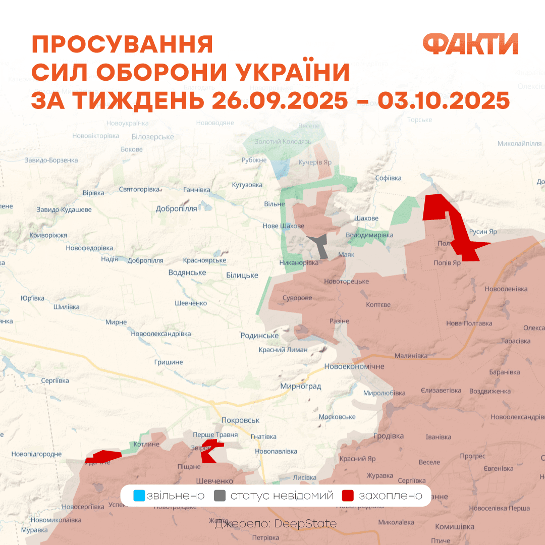 3 октября российские войска продолжали наступательные операции в тактическом районе Константиновка-Дружковка и в районе Доброполья, но не достигли успехов. В то же время Силы обороны Украины продвинулись в направлении Покровска.