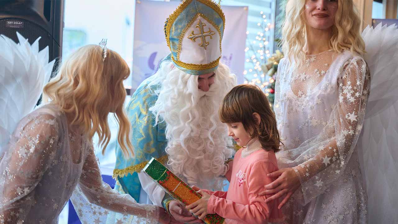 Эти полезные вещи значительно подняли детям настроение. А дальше их ждали особые гости — святой Николай и его подруги Ангелята. Аниматоры развлекали детей активными играми и подарили им сладкие наборы.