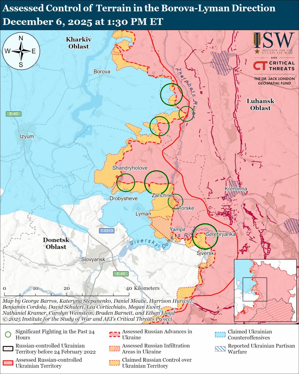 На Лиманском направлении враг атаковал 13 раз, пытаясь вклиниться в нашу оборону вблизи населенных пунктов Грековка, Среднее, Твердохлебово, Заречное и в направлениях Новоселовки, Дробышево, Новосергиевки, Нового Мира и Ставок.