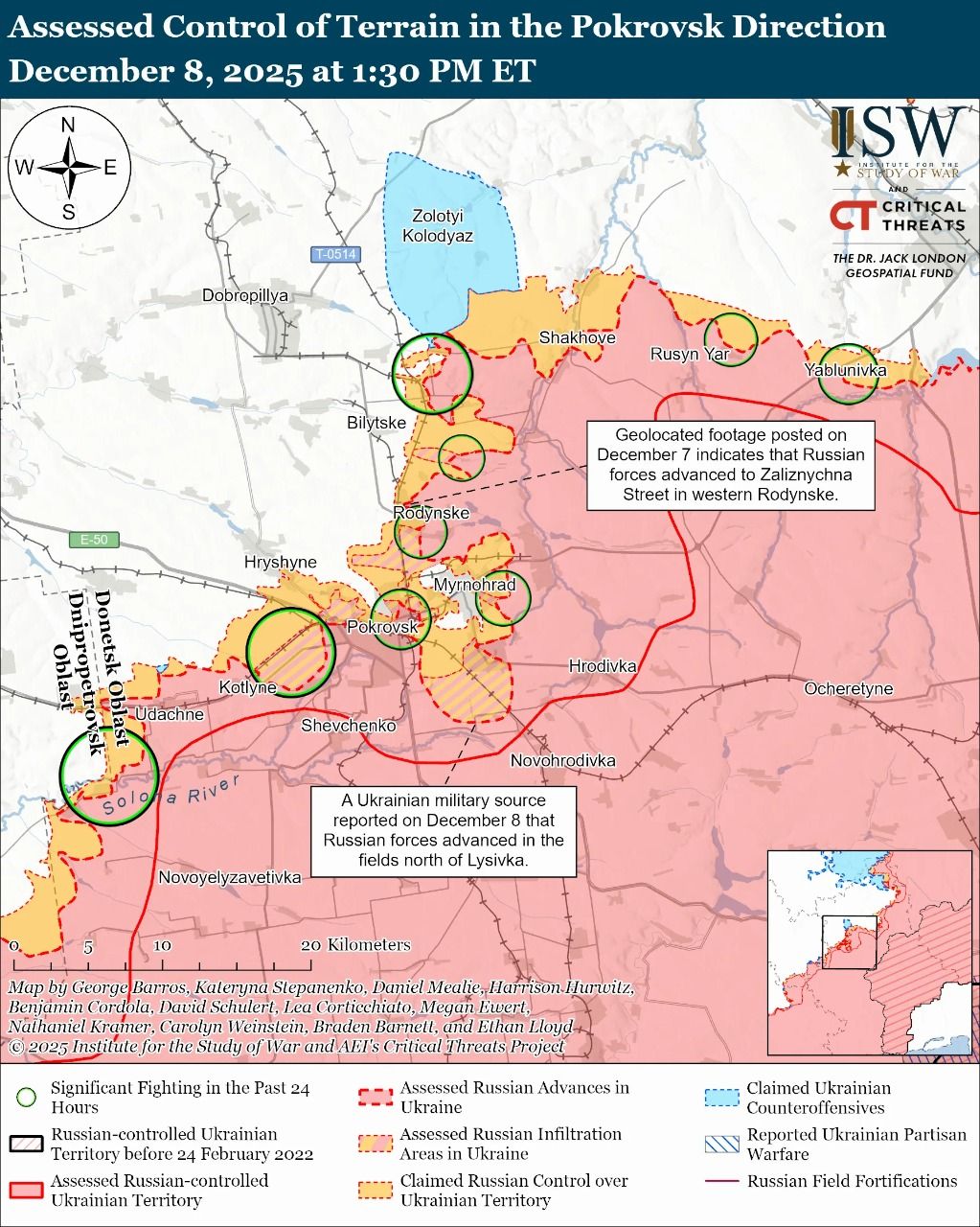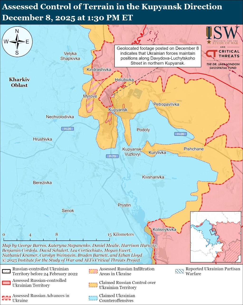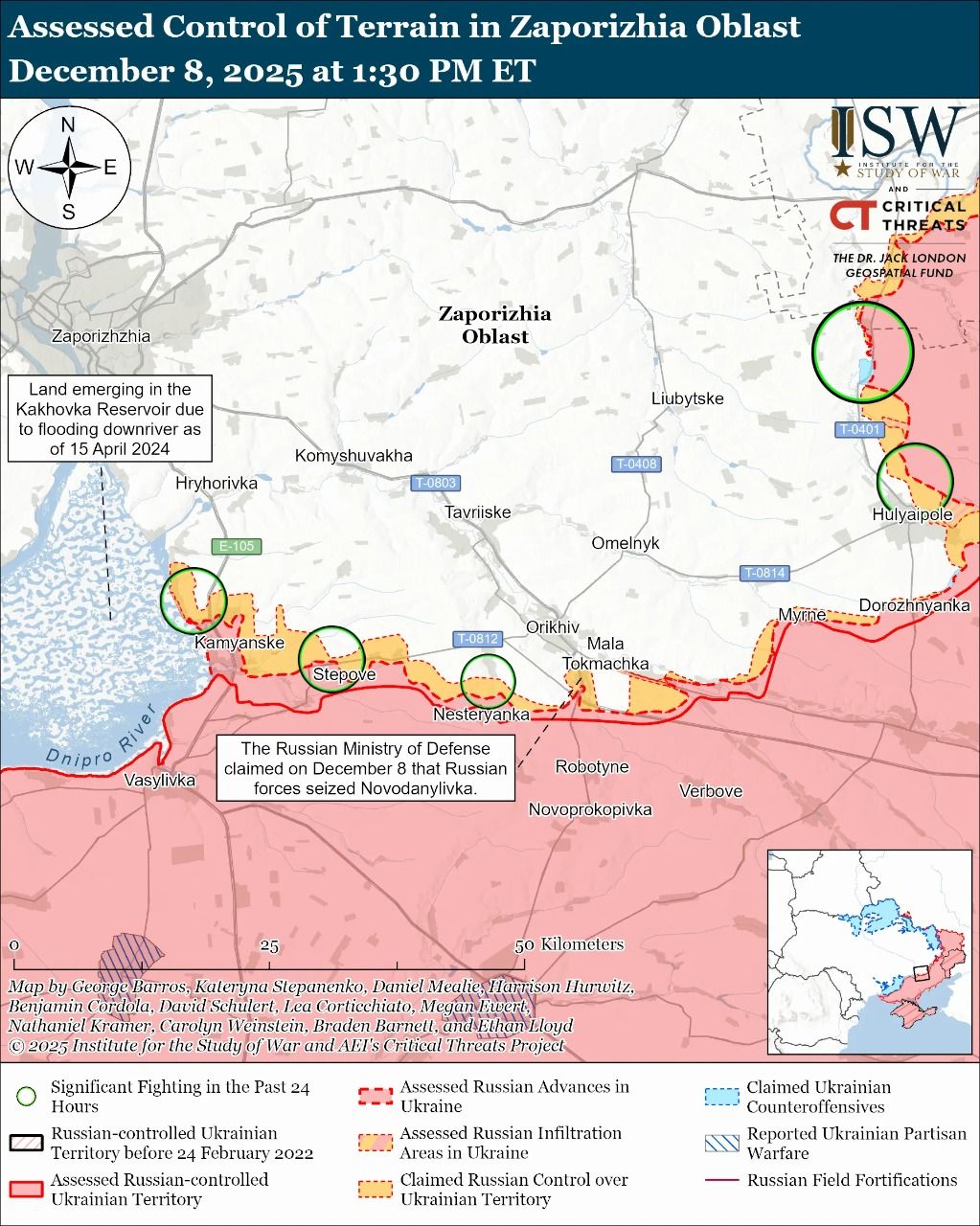 Карта боевых действий в Украине на 9 декабря 2025 года
