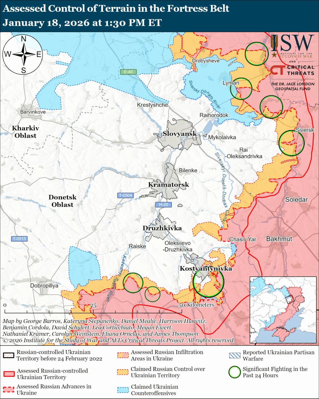 Карта боевых действий в Украине на 19 января 2026