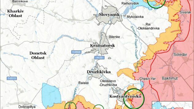 На Константиновском направлении противник осуществил 20 атак в районах населенных пунктов Константиновка, Клебан-Бык, Плещеевка, Софиевка и в направлении Ильиновки, Степановки, Новопавловки.