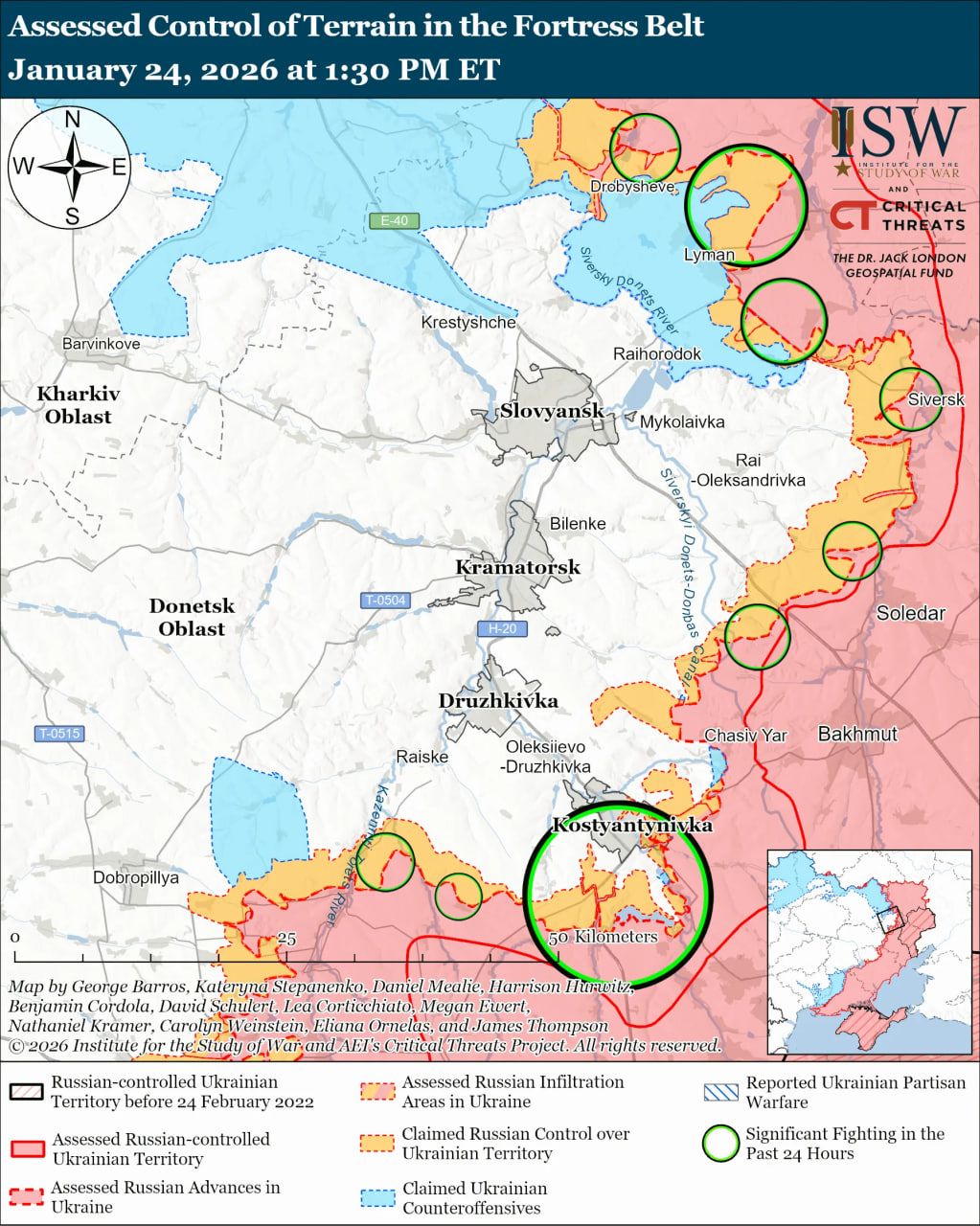 Карта боевых действий в Украине на 25 января 2026