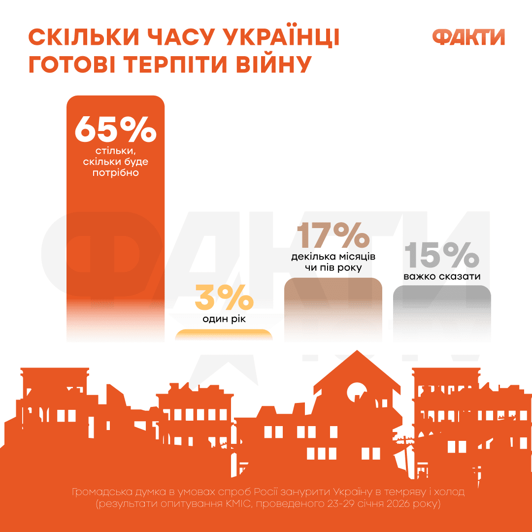 Кроме этого, около 65% украинцев утверждают, что они готовы терпеть войну столько, сколько будет необходимо.