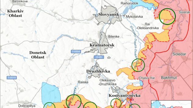 На Славянском направлении в течение вчерашних суток наши защитники остановили 10 попыток оккупантов продвинуться вперед в районах Закитного, Рай-Александровки, Дроновки, Платоновки, Резниковки, Ямполя и Пазено.