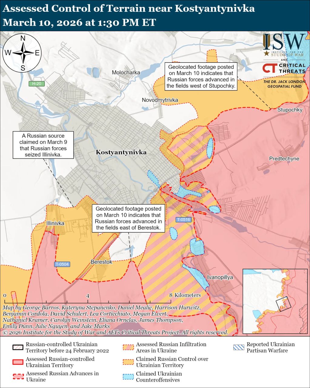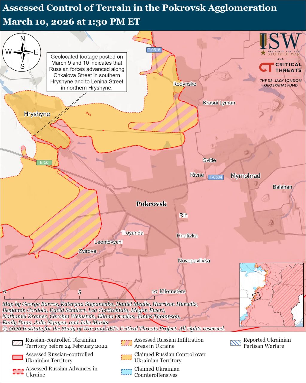 Карта боевых действий в Украине на 11 марта 2026