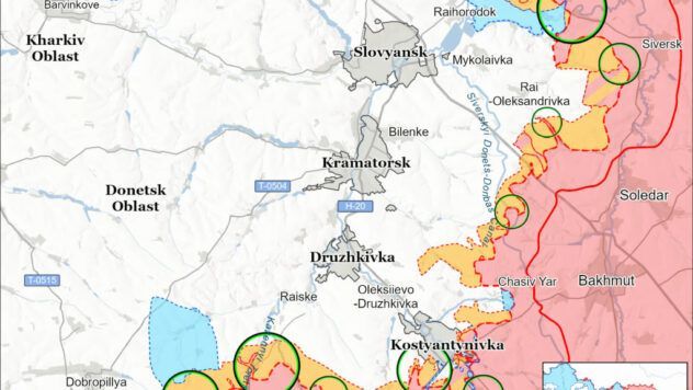 На Константиновском направлении враг совершил 23 атаки в направлении Константиновки, Ильиновки, Новопавловки и в районе населенных пунктов Плещеевка, Бересток, Русин Яр.