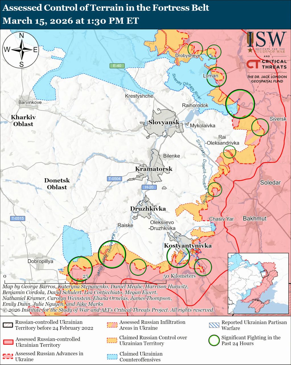 Карта боевых действий на 16 марта 2026 года — ситуация на фронте