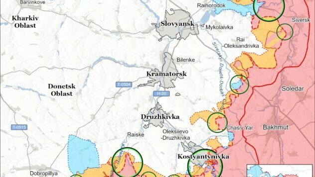 На Константиновском направлении враг совершил 16 атак в районах Константиновки, Плещеевки, Новопавловки и в сторону Ильиновки и Торецкого.